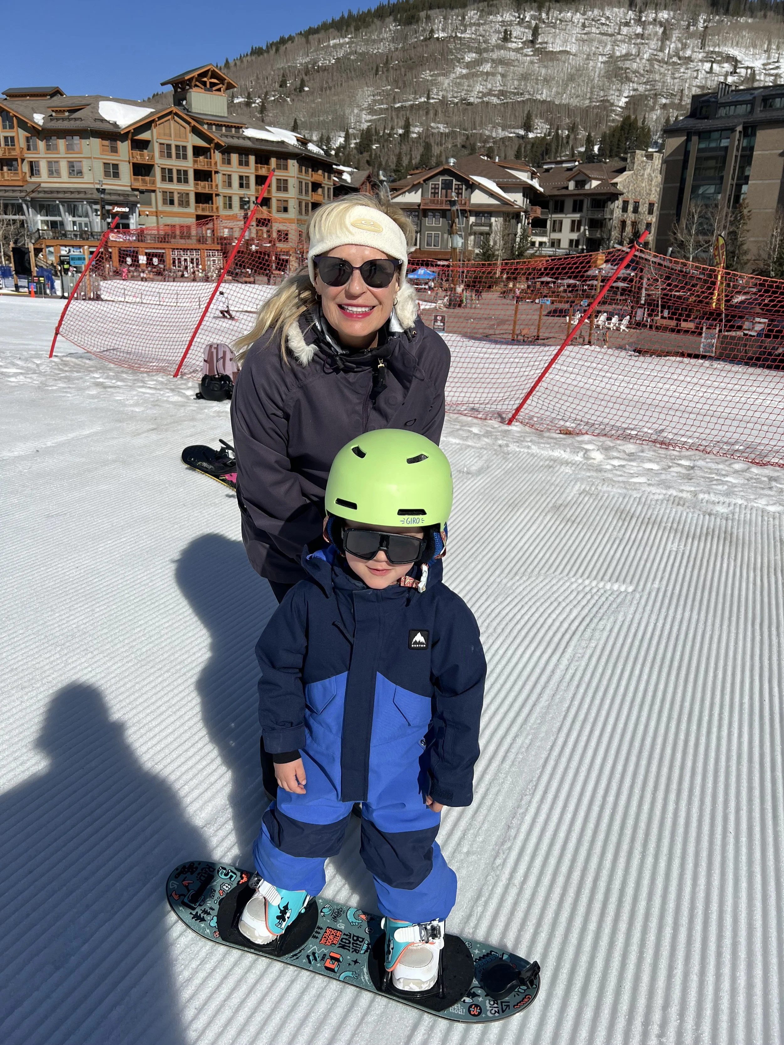 Snowboarding with my grandson.